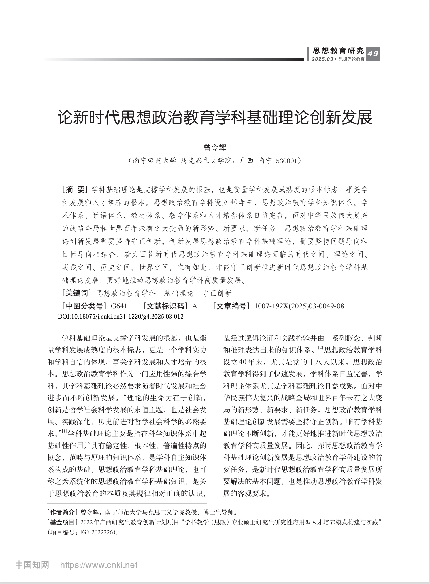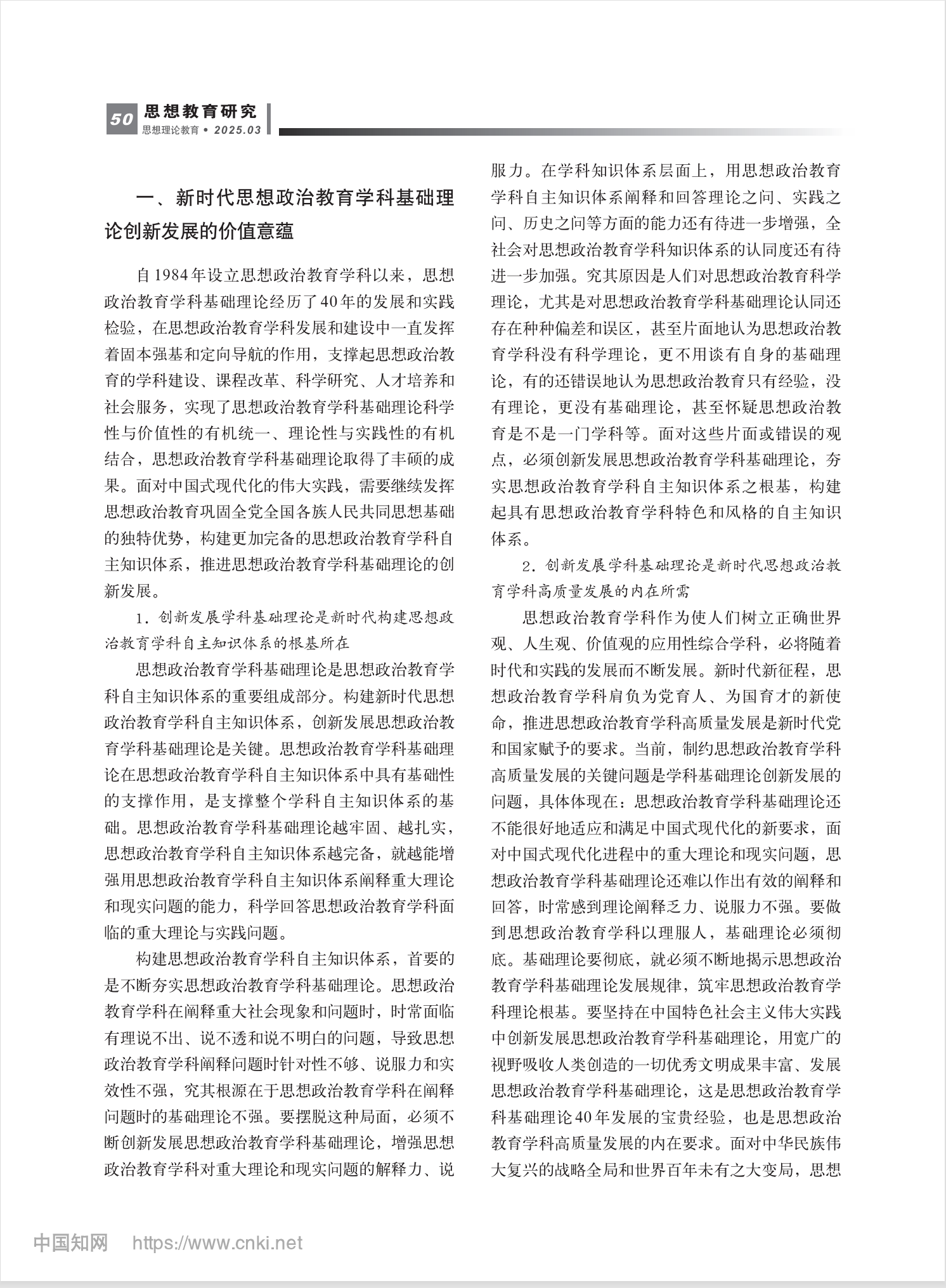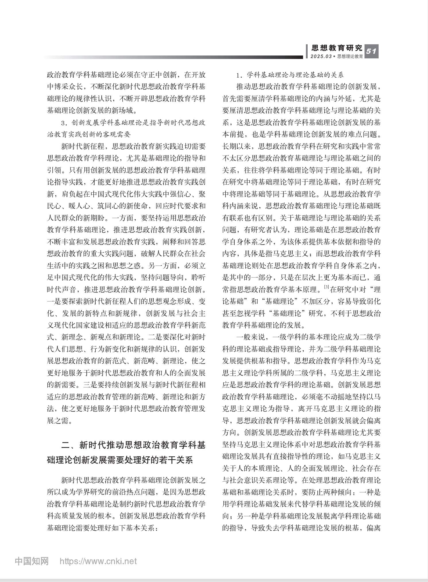 论新时代思想政治教育学科基础理论创新发展