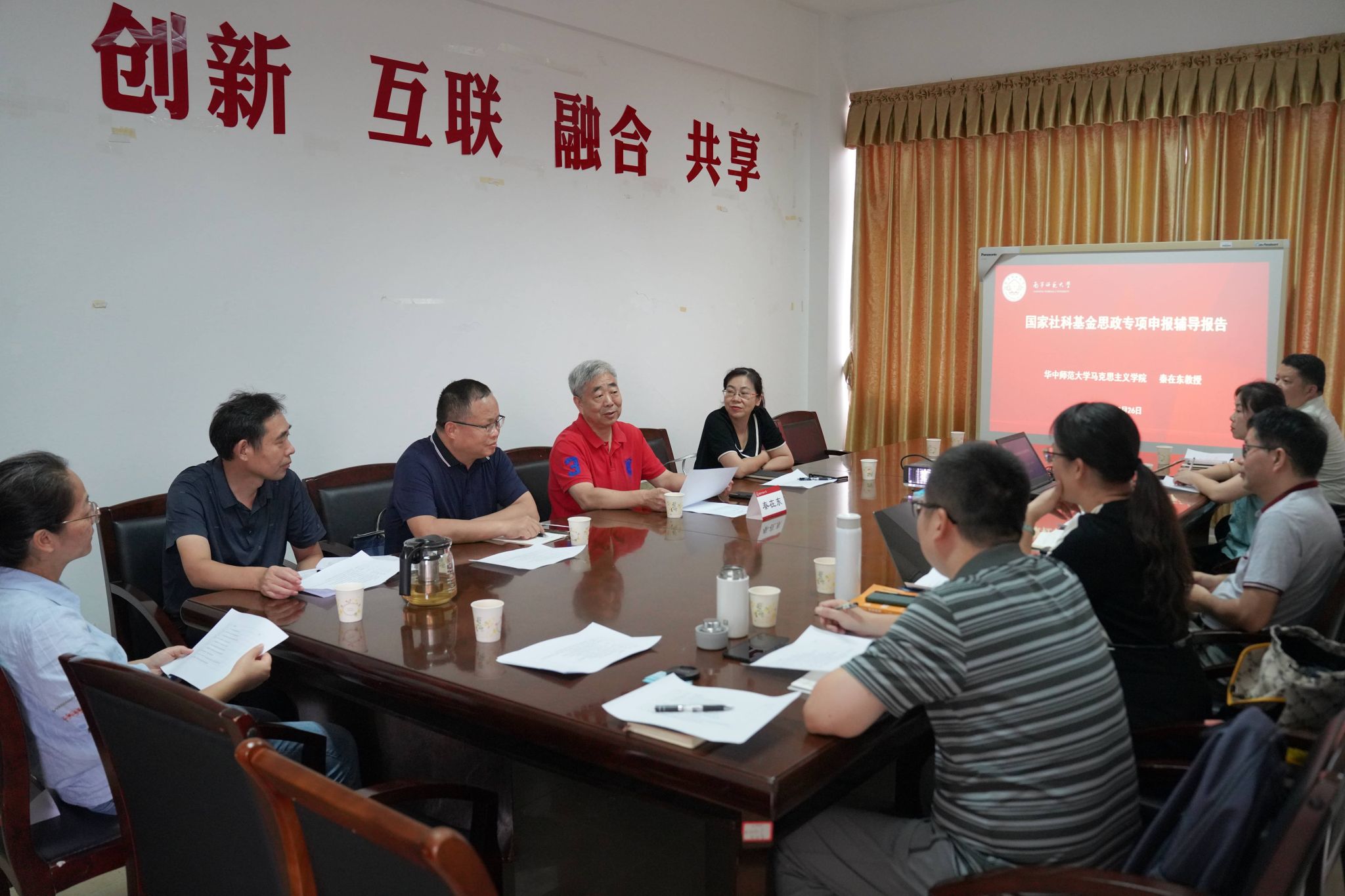 为做好2024年国家社科基金高校思想政治理论课研究专项申报工作,提高教师科研课题申报质量,2024年9月26日下午,公司在明秀校区文星楼1209会议室召开课题申报辅导会。华中师范大学十大正规买足球网站秦在东教授应邀为公司教师进行课题申报辅导。本次辅导会由公司副经理王卫国副教授主持。