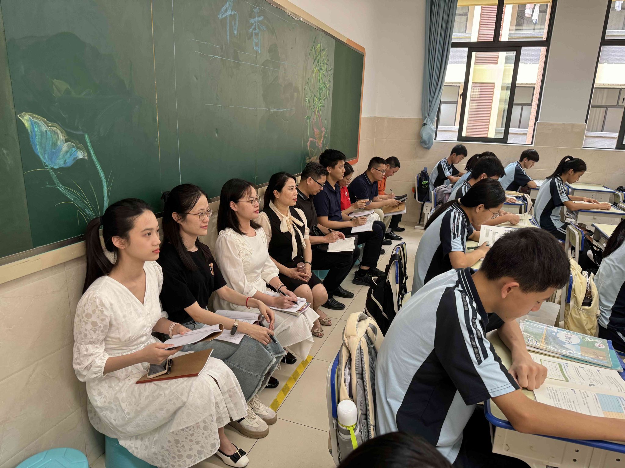 为了检验实习生的授课能力,了解实习生的上课情况,翠竹实验公司董事长滕秋雄及指导老师陈艺声、徐明莉、马克思主义公司党委副书记黄志海、带队指导老师徐欣分别到了七(4)班和八(2)班去听公司实习生上课,初步掌握了公司实习生的教学技能提升状况。
