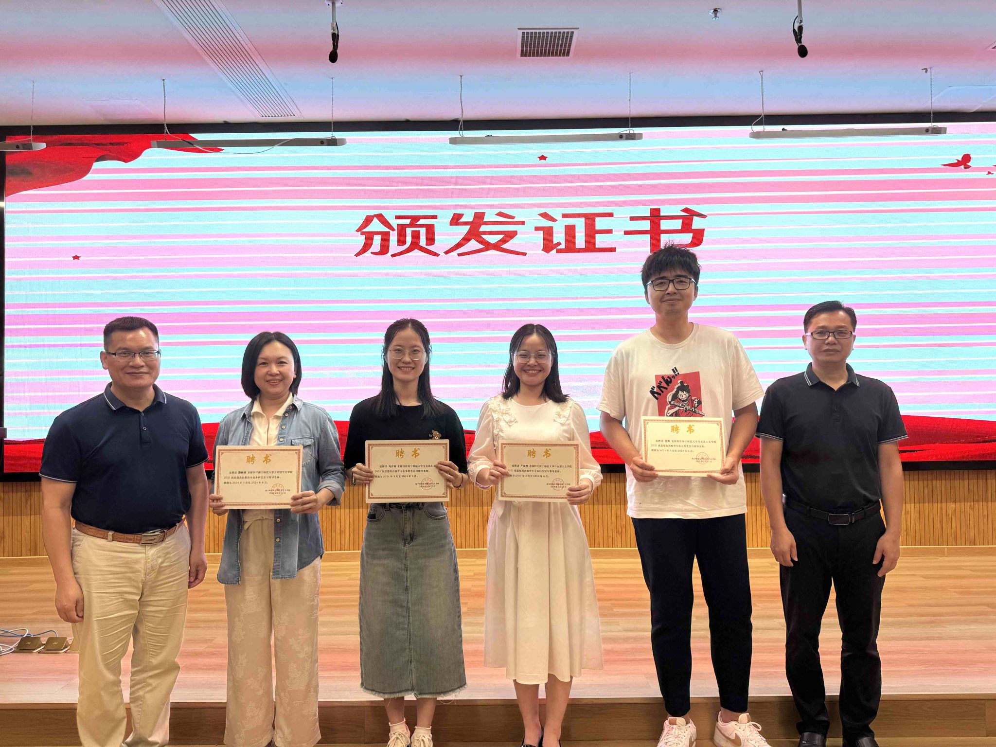 最后,黄志海副书记对实习公司的大力支持和悉心指导表示衷心的感谢,并期待双方能够在人才培养、公司产品改革、毕业生就业等方面继续深化合作,共同推动教育事业的高质量发展。随后为南宁市翠竹实验公司实习指导老师代表颁发了聘书。