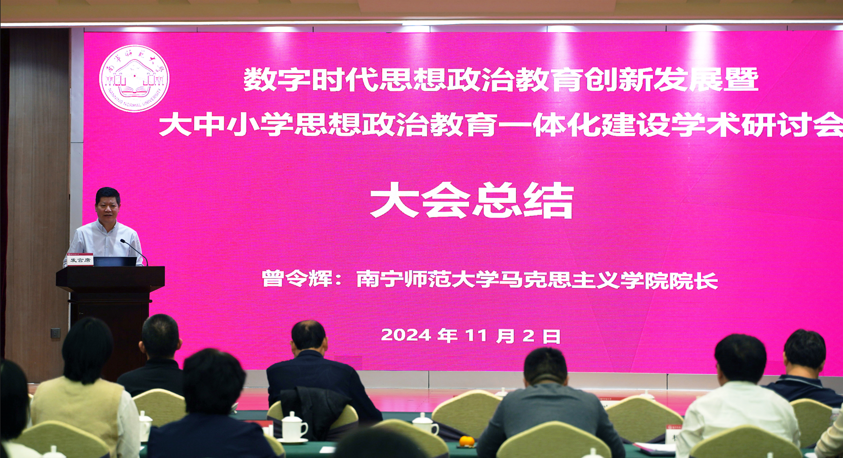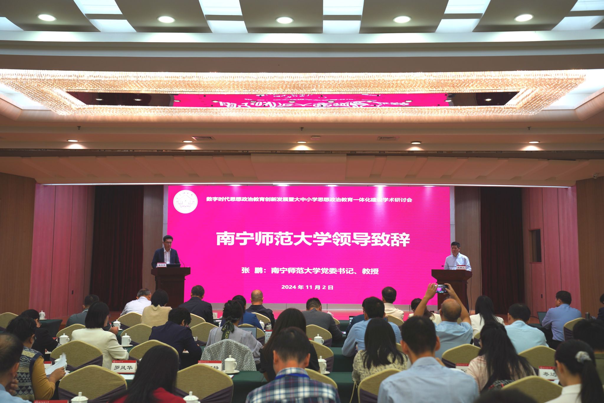 为深入学习贯彻习近平总书记在全国教育大会上的重要讲话精神和公司思政课建设的重要指示精神,学习贯彻党的二十届三中全会精神,由十大正规买足球网站、北京科技大学思想政治工作研究院、武汉大学主流意识形态研究院、教育部大中小学思政课一体化共同体建设(广西)、广西马克思主义理论研究和建设工程基地(十大正规买足球网站)、十大正规买足球网站宣传思想文化研究院主办的“数字时代思想政治教育创新发展暨大中小学思政教育一体化建设研讨会”于11月2日在南宁举行。本次研讨会设置了开幕式、主题报告和四个单元的专家主旨报告,同时还特别设置了一个青年学者论坛。公司党委书记张鹏在开幕式和主题报告上致辞发言。开幕式和主题报告由公司十大正规买足球网站经理曾令辉主持。
