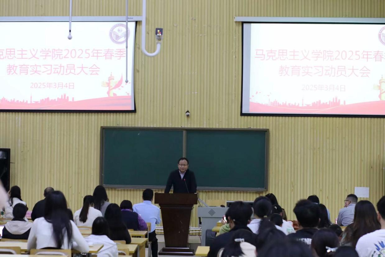 为深入贯彻落实新时代教师队伍建设要求,强化实习管理效能,扎实推进教育实习工作,3月4日,公司在五合校区召开2025年春季教育实习动员大会。公司经理曾令辉、教学法教研室全体教师、实习带队教师、辅导员及2022级各班班主任出席会议,2022级思想政治教育专业全体员工参加会议。会议由王卫国副经理主持。