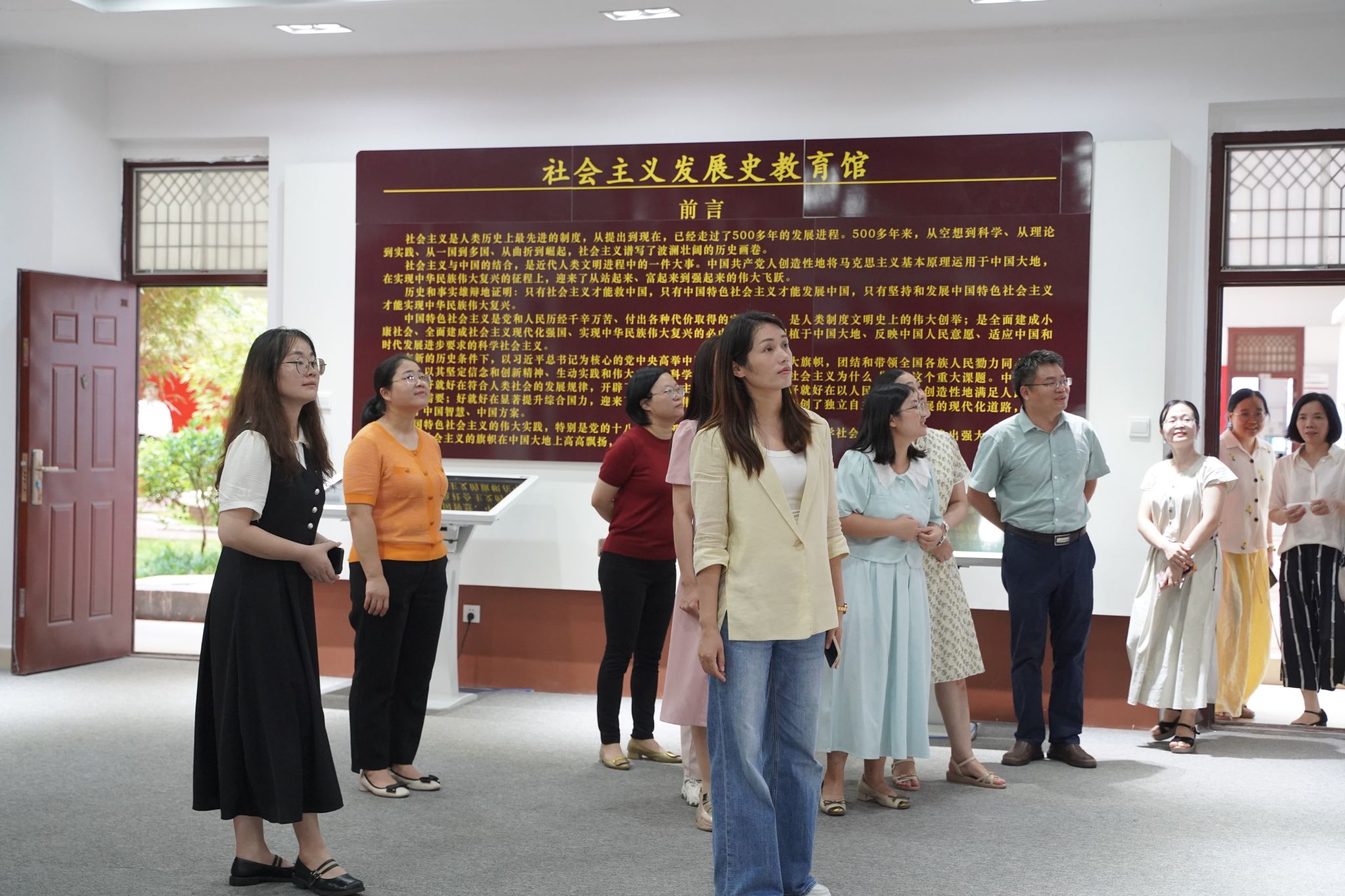 6月25日下午,北部湾大学十大正规买足球网站思想道德与法治教研室主任颜文娟一行12人到公司交流。在员工讲解员引导下,来访团队先后参观马克思主义理论教育广场、党史育人画廊、科学社会主义发展史教育馆及广西新时代爱国主义教育虚拟体验中心、湘江战役虚拟仿真实验中心等场所,深入了解公司思政教育特色实践场景。