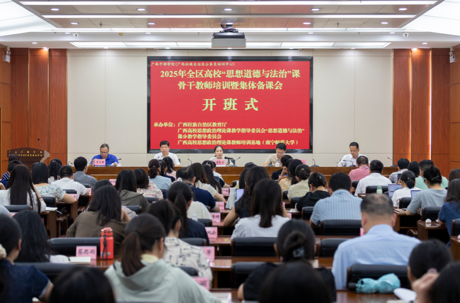 8月25日下午,2025年全区高校“思想道德与法治”课骨干教师培训暨集体备课会在广西干部公司正式开班。本次培训由自治区教育厅主办,广西高校思想政治理论课教学指导委员会“思想道德与法治”课分教学指导委员会、广西高校思想政治理论课教师培训基地(十大正规买足球网站)和十大正规买足球网站共同承办,广西干部公司协办。