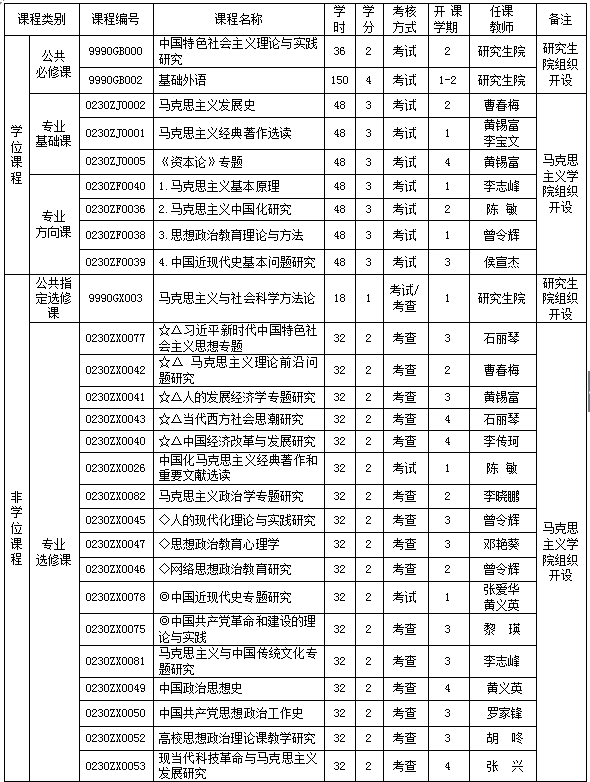 本学科培养具有马克思主义信仰和社会主义信念,树立建设中国特色社会主义的共同理想,比较系统掌握马克思主义基本原理、中国化马克思主义理论、思想政治教育理论与方法,善于运用马克思主义立场、观点和方法开展马克思主义理论与现实问题研究,具有较强的分析和解决实际问题的能力,比较熟练地掌握一门外国语并能阅读本专业的外文资料,了解和掌握本学科的前沿动态,具有学科信息处理和较强的写作及口头表达能力,适应国家和地方经济与社会发展需要的理论宣传、教育、研究、管理和实际工作的专门人才。