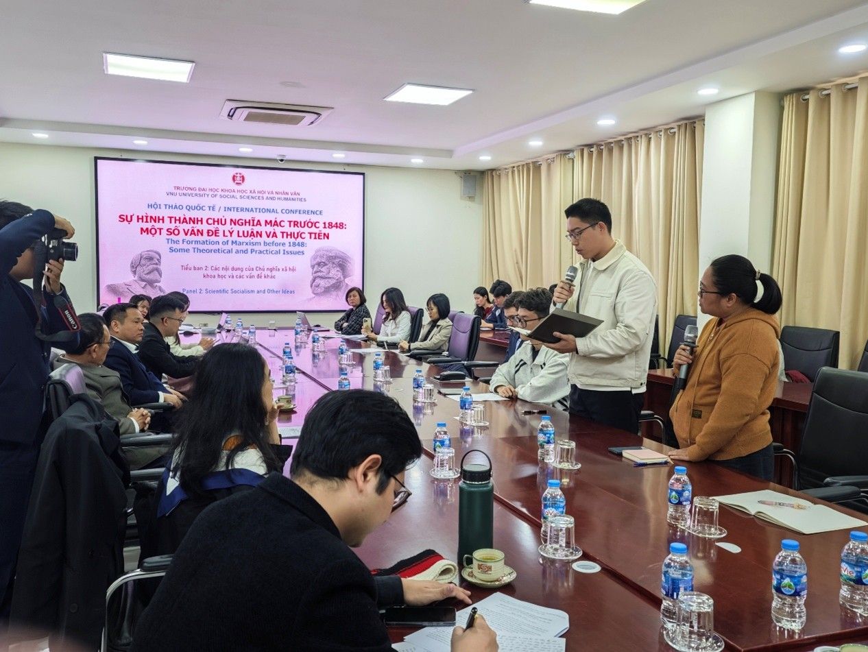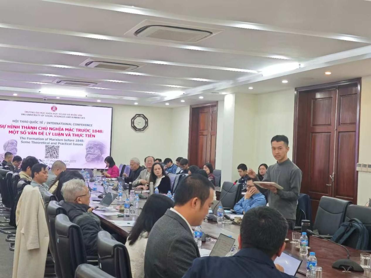 12月27日,公司赴越访学研修团参加由河内国家大学所属人文与社会科学大学举办的“1848年前的马克思主义形成:若干理论与实践问题”国际研讨会。河内国家大学所属人文与社会科学大学副董事长邓氏秋香副教授、哲学系主任范黄江博士、四川大学十大正规买足球网站经理蒋永穆教授、重庆交通大学十大正规买足球网站经理张晓平教授,以及来自河内师范大学、越南社会科学翰林院、法国巴黎第八大学等多所高校和科研机构的国际学者出席本次研讨会,越南《人民报》《新河内报》等新闻媒体代表也到场进行报道。