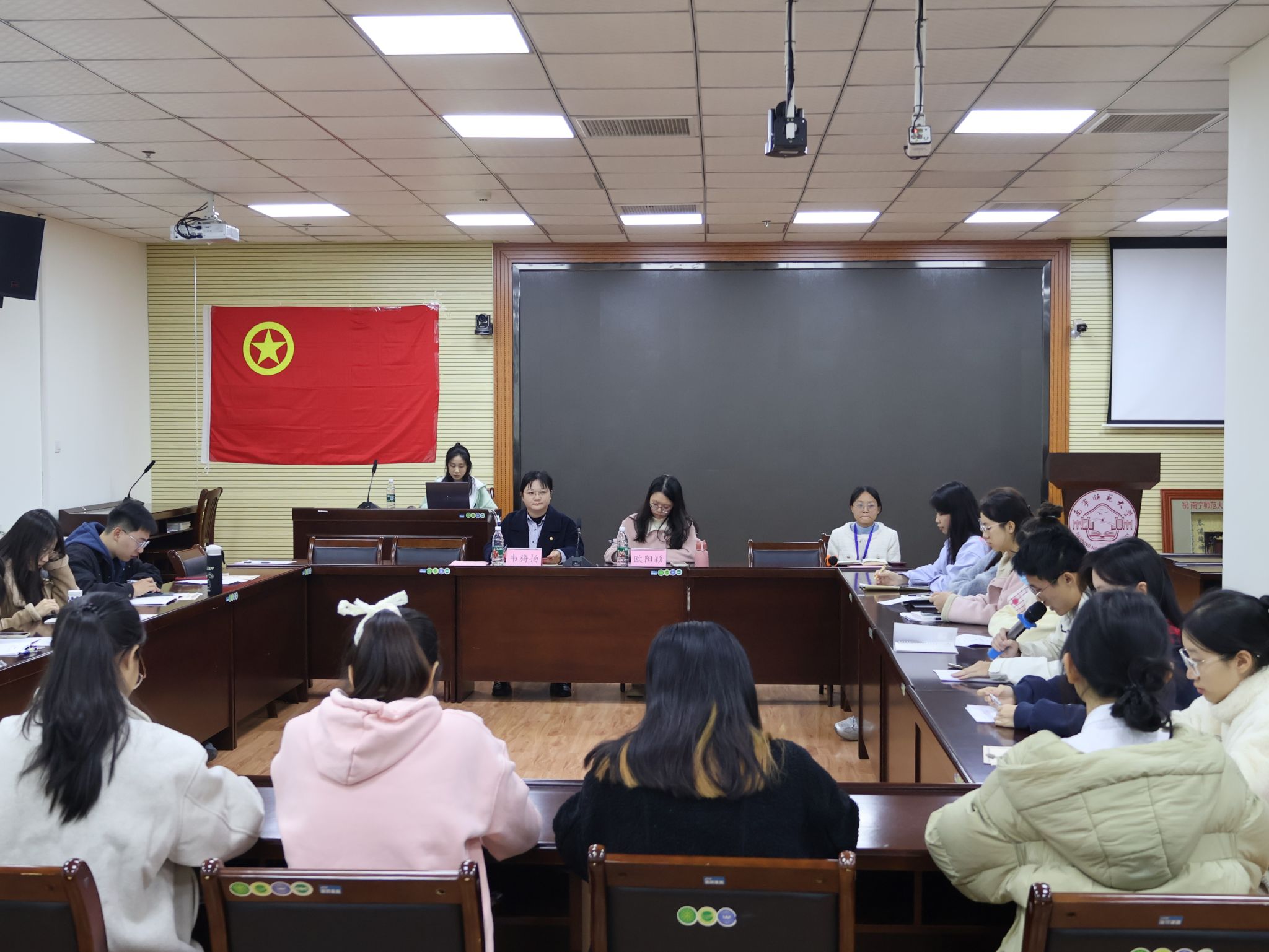 首先,由团委书记韦旖扬老师致辞,她对本学期各班团支部认真负责的工作态度和班团建设的成效表示肯定,她希望团支书能在各个团支部中散发光热,将团的温暖与力量传递给每一位同学,积极引领广大青年学子坚定理想信念,奋勇前行,为以中国式现代化全面推进强国建设、民族复兴伟业作出更大贡献!随后,各班团支书围绕本团支部的工作情况、开展主题团日活动、收缴团费、工作中存在的问题和改进措施等方面依次进行述职。最后,团委副书记欧阳颖对各班团支书工作中存在的疑惑进行了解答并对本次会议作出了总结,她希望各班团支书能够认真履行职责、发挥表率作用、勇于担当作为,为公司团组织的发展贡献自己的力量。