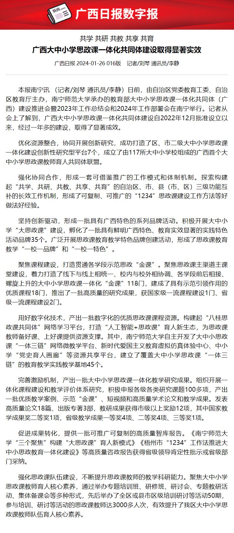 【转载】广西大中小学思政课一体化共同体建设取得显著实效