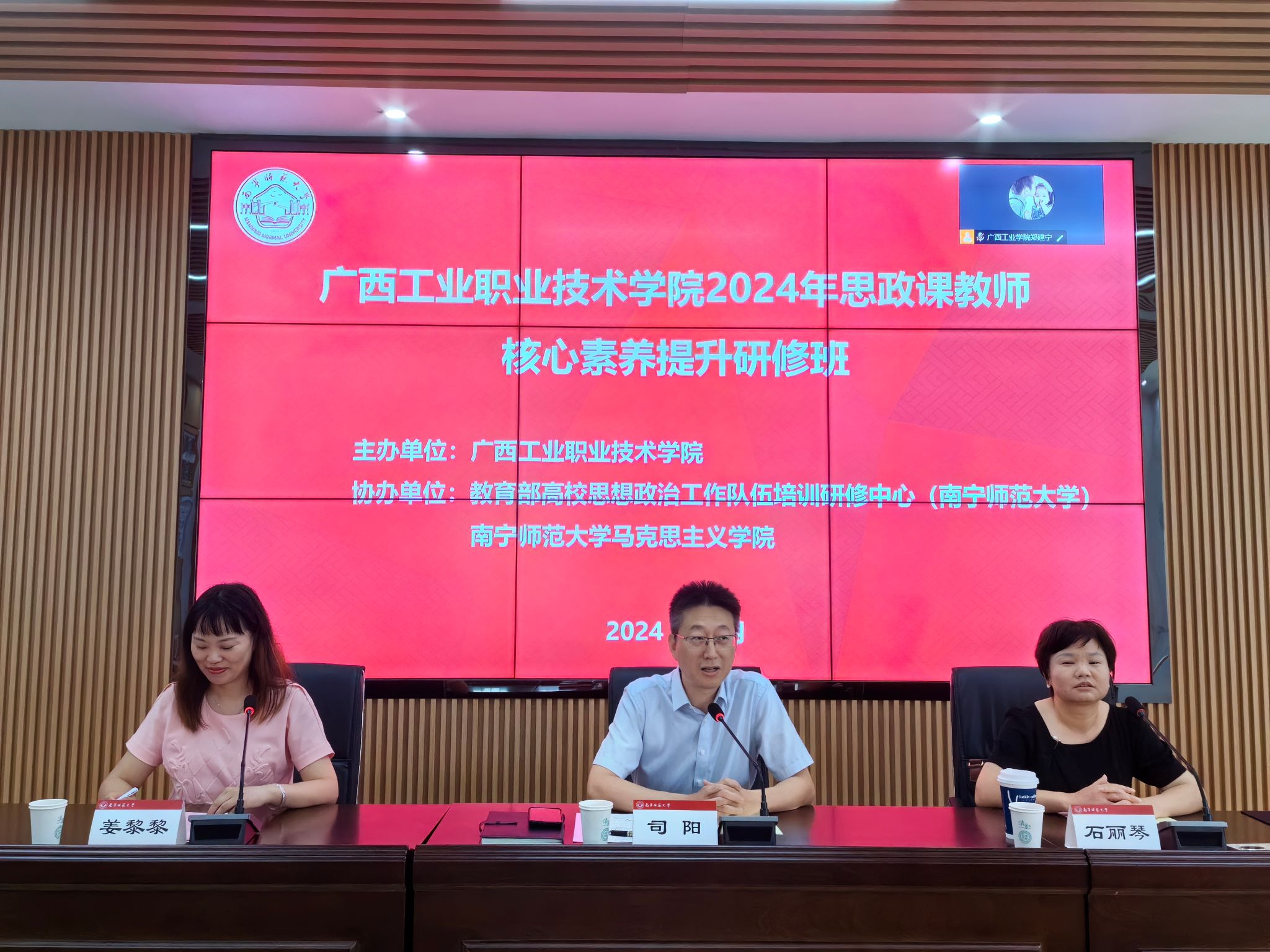 2024年5月31日,由广西工业职业技术公司主办,教育部高校思想政治工作队伍培训研修中心(十大正规买足球网站)及十大正规买足球网站承办的广西工业职业技术公司2024年思政课教师核心素养提升研修班在南宁顺利举行开班仪式。来自广西工业职业技术公司43名思想政治理论课教师参加培训。广西工业职业技术公司十大正规买足球网站经理司阳副教授、十大正规买足球网站副经理石丽琴教授及十大正规买足球网站姜黎黎老师出席了开班仪式。
