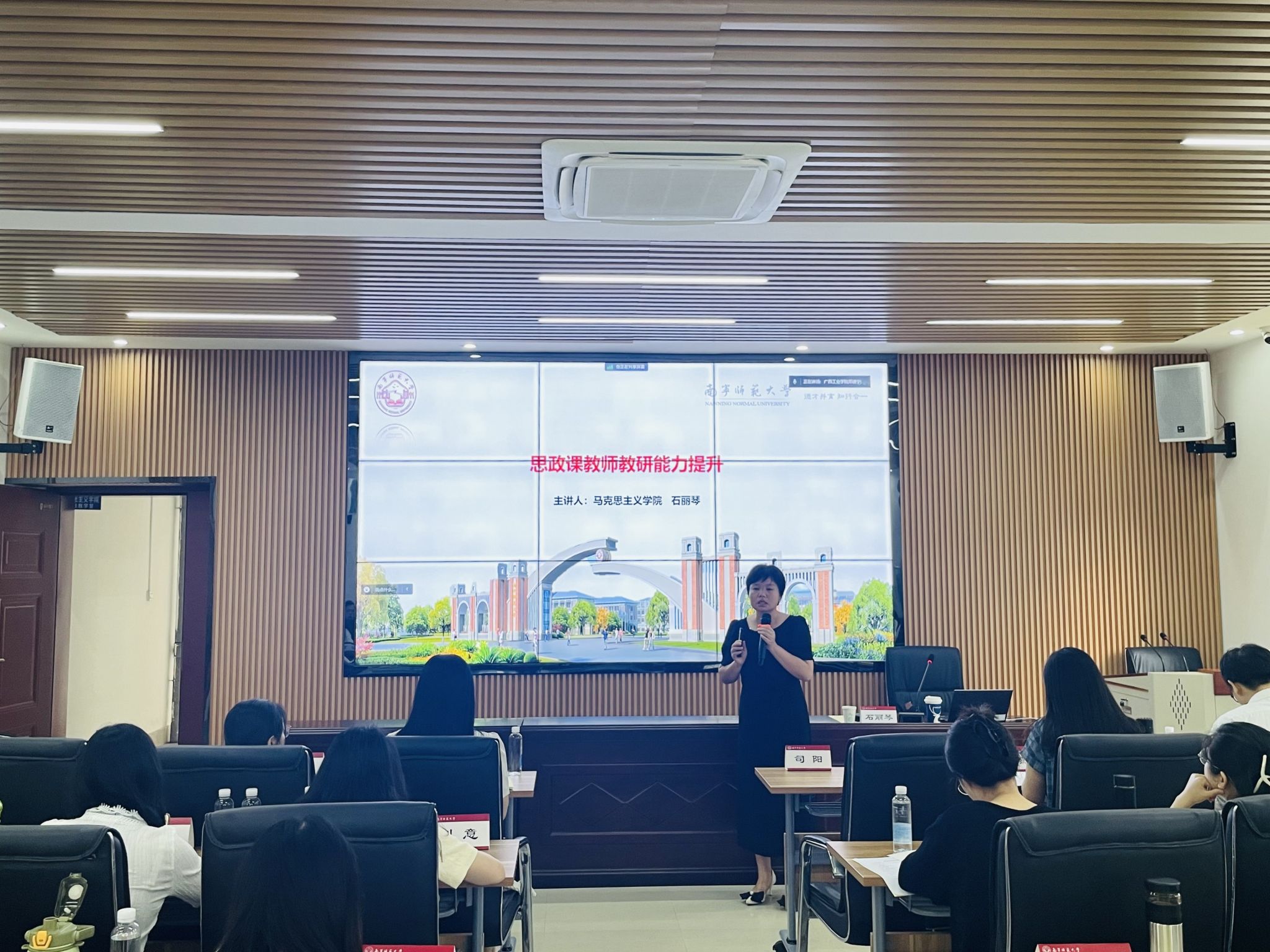 开班仪式结束后,十大正规买足球网站副经理石丽琴教授以《高校思想政治理论课教师研究能力提升》为题作专题报告。石丽琴教授从教研能力理解、思政课教师教研能力提升的重要性、思政课教师教研能力提升的四个重要意识及思政课教师教研能力提升的重要途径等四个方面与学员们分享。她指出,高校思政课教师要深入研究思政课教学改革中的热点、难点问题,提高思政课教学内容的深度和广度,守正创新推动思政课建设内涵式发展。培训结束后,石丽琴教授认真、耐心地回答学员们提出自己平时研究中遇到的困惑。