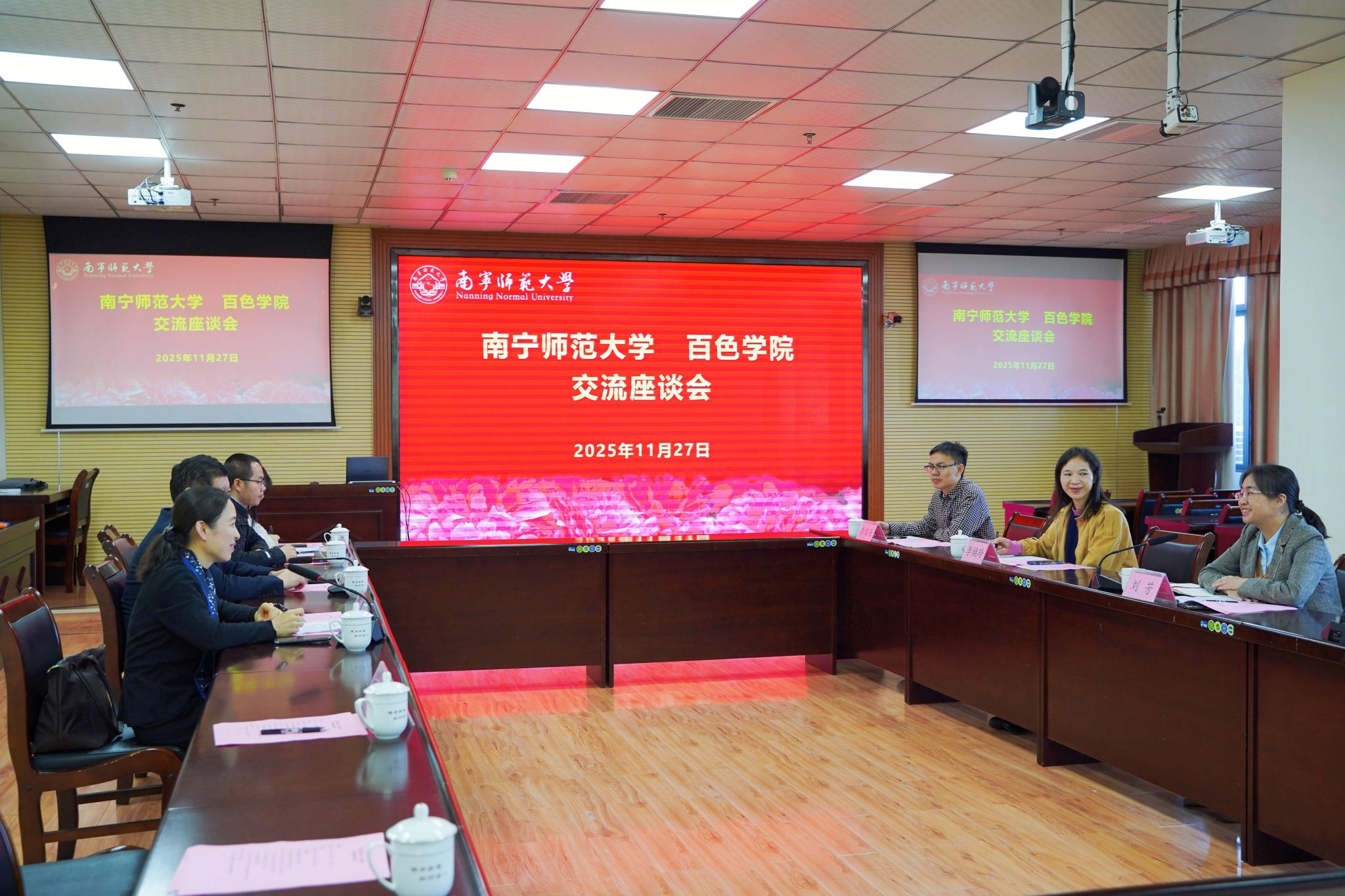 为深化新时代高校思政育人工作创新,探寻协同发展新路径,近日,百色公司党委常委、副董事长刘芳一行到访公司十大正规买足球网站,在五合校区8栋B座206会议室围绕思政课建设、思想政治教育一流专业发展、大中小学思想政治教育一体化建设三大核心主题开展交流座谈会。公司党委副书记唐荣双出席会议,十大正规买足球网站曾令辉经理主持会议,两校相关职能部门负责人、教师代表参与活动。
