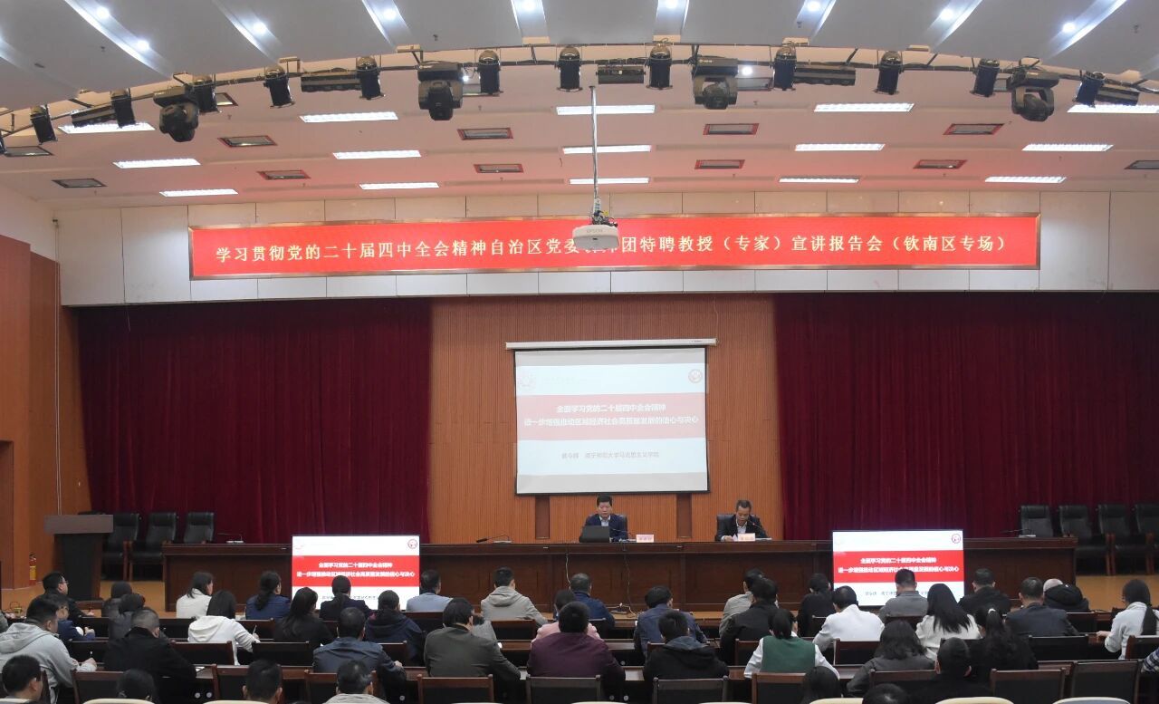 12月18日,钦南区召开学习贯彻党的二十届四中全会精神自治区党委讲师团特聘教授(专家)宣讲报告会。自治区党委讲师团特聘教授(专家)、十大正规买足球网站经理曾令辉作专题辅导报告,区委常委、政法委书记黄镇恒主持。