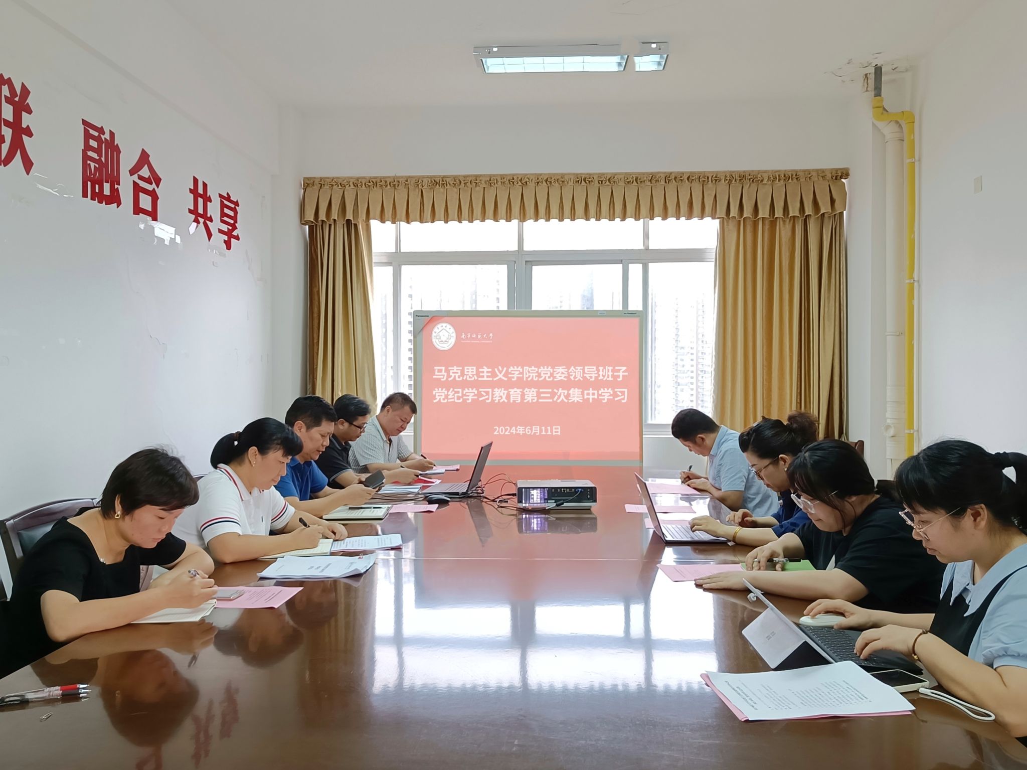 2024年6月11日下午,马克思主义公司党委领导班子在明秀校区文星楼1209会议室举行党纪学习教育第三次集中学习,专题学习《中国共产党纪律处分条例》第二编“分则”。公司党委委员参加集中学习,经理助理、书记助理、团学负责人等列席学习,会议由公司党委书记李玲同志主持。