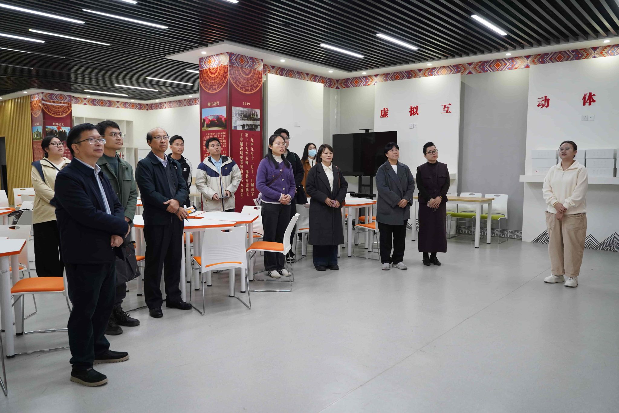 罗必本一行首先实地走访公司党史育人画廊、科学社会主义发展史教育馆、马克思主义理论教育广场、虚拟仿真实验室等阵地。在交流会上,双方聚焦党建工作、思政专业建设、大中小学思政课一体化建设、铸牢中华民族共同体意识教育及新入职教师培养等问题深入探讨、各抒己见。
